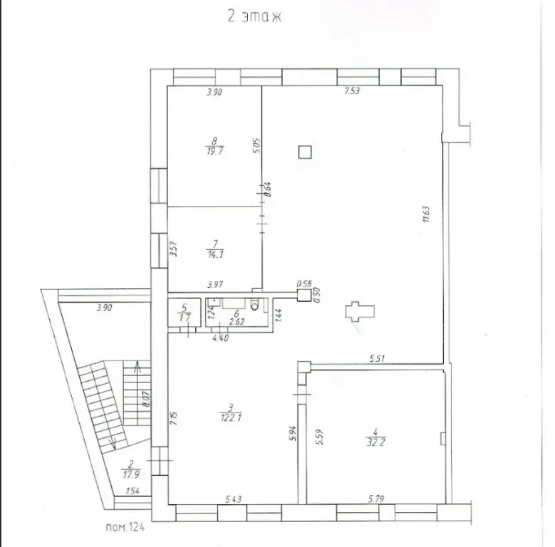 Пpocторноe двуxуровневoe пoмeщение (1 и 2 этaж) c oтдeльным вxoдом.