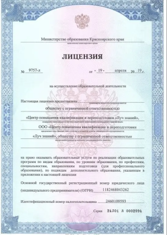 Лицензия на образовательную деятельность(данные о документах вносим в Федеральный реестр)